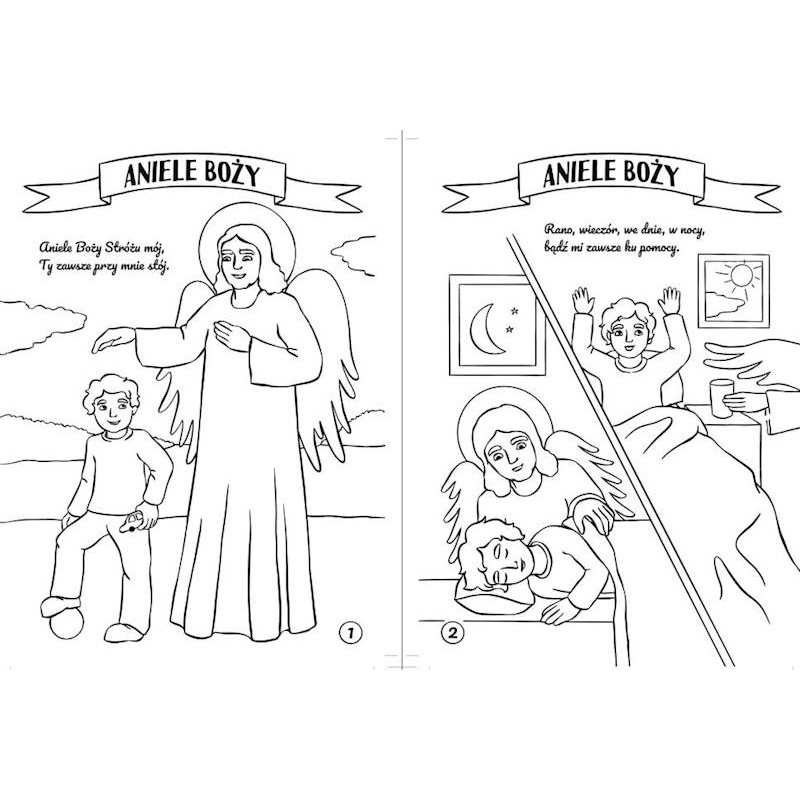 Kolorowanka stanowi bardzo przydatną pomoc w przyswajaniu pierwszych modlitw. Teksty: „Ojcze nasz”, „Aniele Boży” i „Zdrowaś Maryjo” wyjaśniane są obrazkami ilustrującymi poszczególne zdania modlitw. Niewątpliwie jest to doskonałe wsparcie w domowej katechezie. Aktywne włączenie się młodych katolików w pokolorowanie poszczególnych scen pobudzi wyobraźnię dziecka i ułatwi zapamiętanie modlitw. Warto towarzyszyć podopiecznym w ich prawidłowym budowaniu relacji z Bogiem, Aniołem Stróżem i Matką Najświętszą. W ramach DIY jest do przygotowania kapliczka 3D.