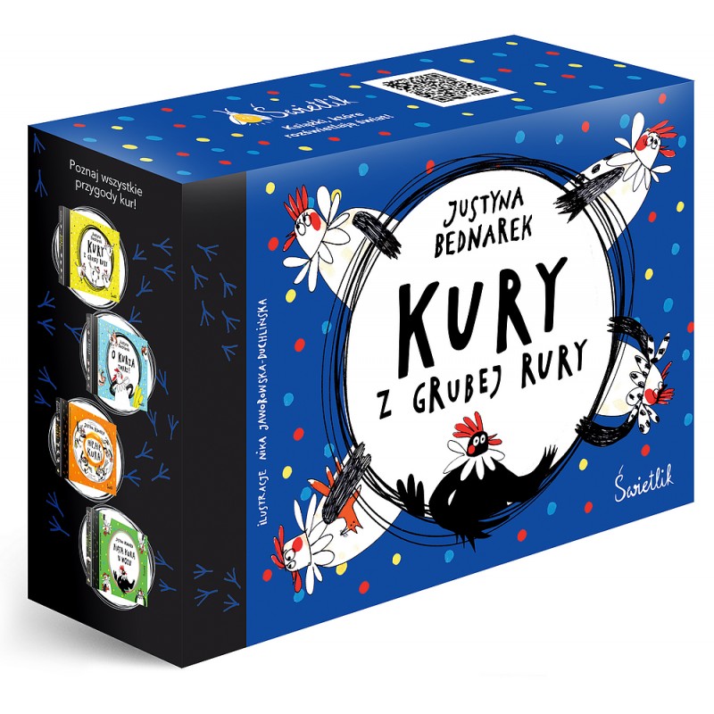 Nie lada gratka dla fanów pióra Justyny Bednarek – specjalny pakiet z pierwszymi czterema częściami fantastycznych przygód kur rasy brahma, które podbiły serca młodych czytelników! Od teraz seria jest dostępna w pięknym, eleganckim pudełku, idealnym na świąteczny prezent lub urodzinowy podarunek dla dziecka.