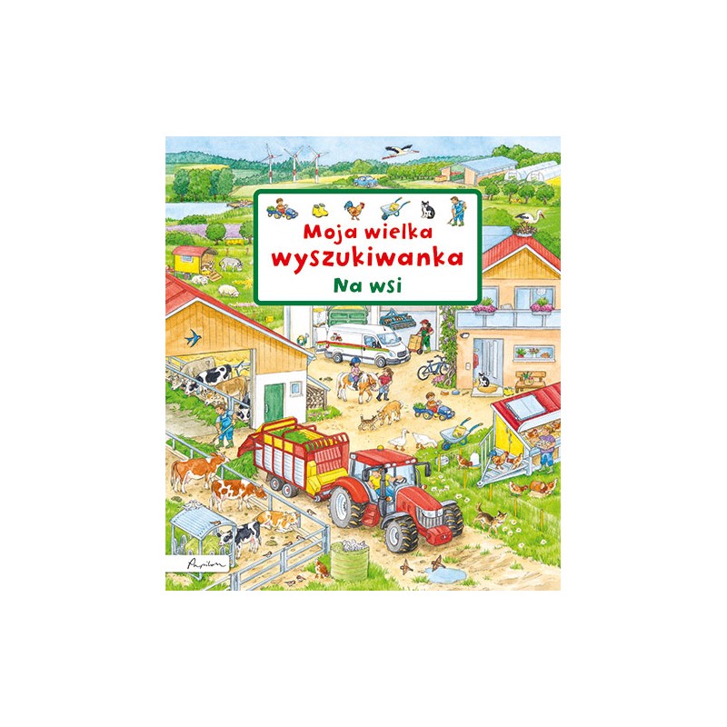 11 ilustracji ukazujących wiejskie podwórko, zwierzęta, pola uprawne i pastwiska. Obok każdej planszy krótkie, przystępnie przedstawione informacje na temat pracy na roli, zwierząt i innych ciekawych elementów przy obrazkach zachęcających do zabawy w wyszukiwanie.
