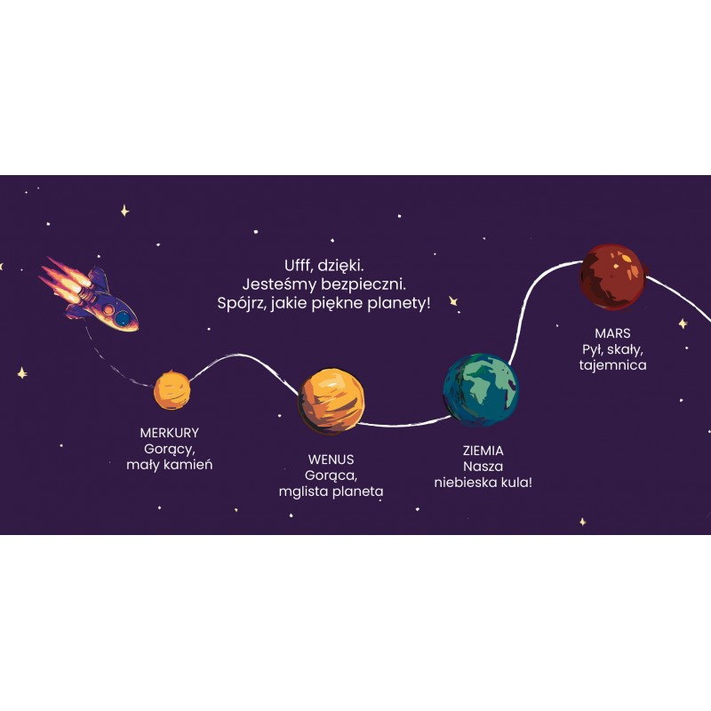 Dziecko dowie się, które planety są skaliste, a które gazowe, jak wygląda Układ Słoneczny i czym wyróżnia się nasza Ziemia. Każda strona tej książki to nowe odkrycie i ekscytująca wyprawa w nieznane!