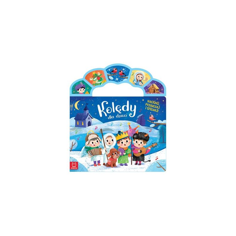 Oddajemy do Państwa rąk zbiór z pięknie zaśpiewnymi kolędami dla dzieci, lubianymi i znanymi od pokoleń. Format książki jest bardzo poręczny dla malucha – idealnie dopasowuje się do małych rączek. Kolorowe ilustracje oraz teksty każdej z kolęd zachęcą dziecko do wspólnego śpiewania. Teksty otoczone są kolorowymi ilustracjami, nawiązującymi do treści piosenek, często je uzupełniają, a co najważniejsze – zachęcają do wspólnego kolędowania. Nagranie można włączyć, naciskając obrazek na rączce – jeden obrazek odpowiada jednej kolędzie. W każdej chwili można wyłączyć grającą melodię, ponownie naciskając obrazek. Książka działa na baterie, które można wyjąć i wymienić. Istnieje również możliwość wyłączenia grających piosenek, przesuwając guzik przy baterii. Książka sprawdzi się dla dzieci w każdym wieku. Młodsze mogą tylko słuchać piosenek, starsze dzieci mogą przeczytać tekst i śpiewać równocześnie z nagraniem. W zbiorze znajduje się pięć popularnych kolęd wraz z nagraniami: Pójdźmy wszyscy do stajenki, Cicha noc, Hej, kolęda, kolęda!, Lulajże, Jezuniu, Przybieżeli do Betlejem.