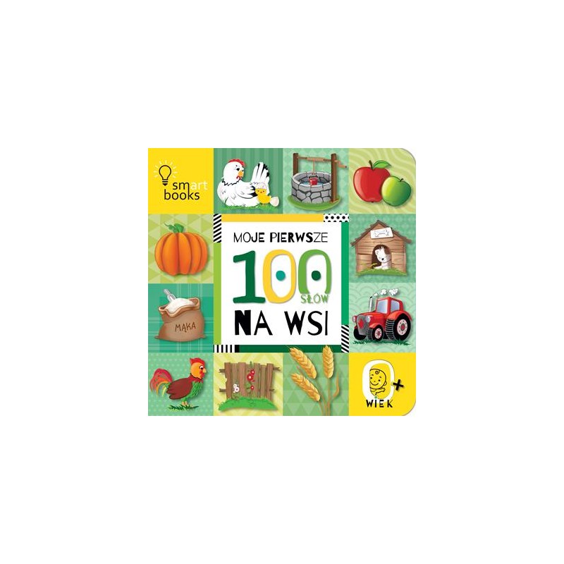 Pierwsza książeczka maluszka do nauki podstawowych słów i poznawania otaczającego świata przedstawionego na pięknych, kolorowych obrazkach. Przeznaczona dla dzieci w wieku 0+. Oto życie NA WSI! 24 strony książeczki podzielone są na działy pozwalające dziecku na przyswojenie 100 słów i pojęć związanych z tematyką wsi, takich jak: przyroda i krajobraz, gospodarstwo i zabudowania, zwierzęta w domu i zagrodzie, pojazdy, maszyny i narzędzia, praca na wsi, zbiory i dary wsi … i wiele innych.