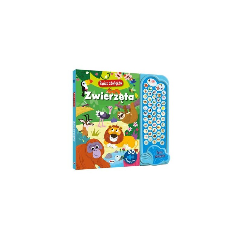 Książka zabiera małych czytelników w niezapomnianą PODRÓŻ W RÓŻNE ZAKĄTKI ŚWIATA. Dzieci znajdą w niej mnóstwo ZWIERZĄT przedstawionych w ich naturalnym środowisku. Wyróżnikiem publikacji jest aż 50 różnorodnych DŹWIĘKÓW. Dzięki niej maluch dowie się, jakie dźwięki wydają lew, struś, pszczoła, krokodyl czy niedźwiedź. Przyjazne ILUSTRACJE charakteryzują się ŻYWĄ KOLORYSTYKĄ.