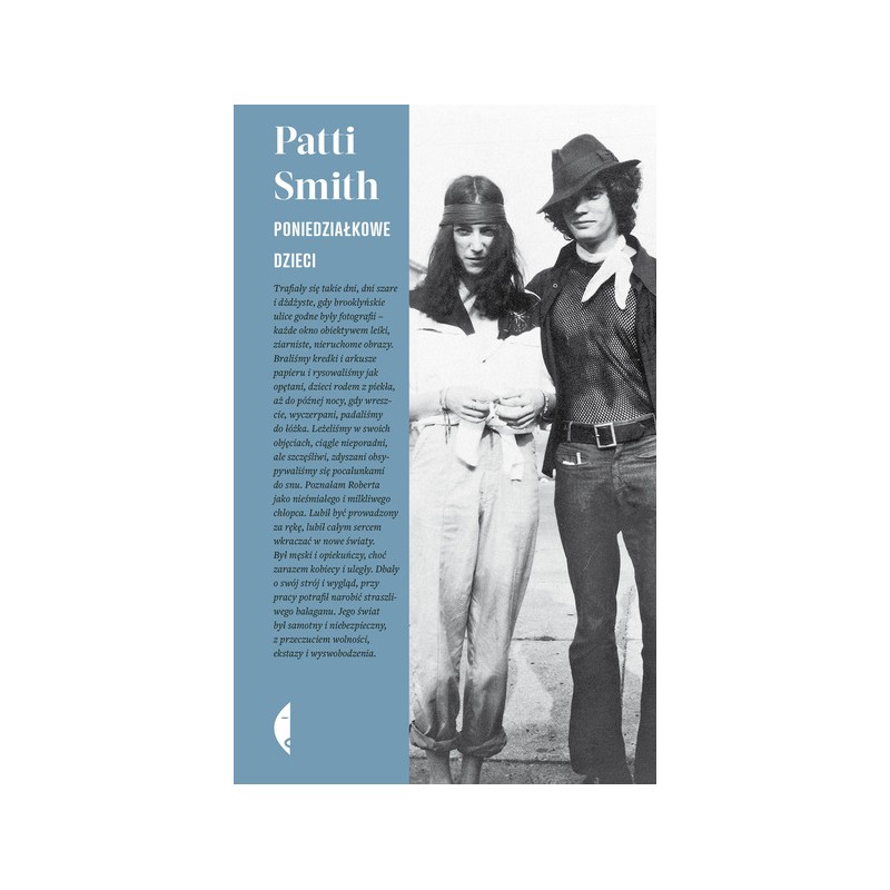 Było to lato, gdy umarł Coltrane, lato miłości i zamieszek, lato, gdy przypadkowe spotkanie na Brooklynie pchnęło dwoje młodych ludzi na drogę sztuki, miłości i wspólnej pracy. Patti Smith została poetką i piosenkarką, a Robert Mapplethorpe rozwijał swój prowokacyjny styl w fotografii. Niewinni, oddani sztuce, przemierzali Nowy Jork od Coney Island po Czterdziestą Drugą Ulicę, aż dotarli do słynnego okrągłego stołu w lokalu Kansas City, w którym brylował krąg przyjaciół i wyznawców Andy’ego Warhola. W 1969 roku para zamieszkała w hotelu Chelsea i weszła do środowiska ludzi okrytych – dobrą i złą – sławą, wpływowych artystów z barwnej cyganerii. To tam dwoje dzieciaków zawarło pakt, że będą się o siebie troszczyć. Poniedziałkowe dzieci zaczynają się jako historia miłosna, a kończą jako elegia. To także hołd złożony Nowemu Jorkowi na przełomie lat sześćdziesiątych i siedemdziesiątych, jego pięknu i jego demonom. To prawdziwa baśń, portret dwojga młodych artystów w przededniu sławy.