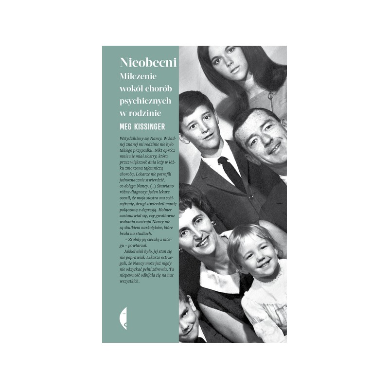 Po latach Meg Kissinger, już jako ceniona amerykańska reporterka, wreszcie przerwała tę zmowę milczenia. Jej Nieobecni to rozpisana na dekady opowieść o zmianie, jaka dokonała się w diagnostyce i leczeniu osób chorujących psychicznie. Czy tragedie, które spotkały Kissingerów, byłyby dziś do uniknięcia? Ta historia pokazuje, do czego mogą prowadzić społeczne tabu i brak systemowej pomocy.