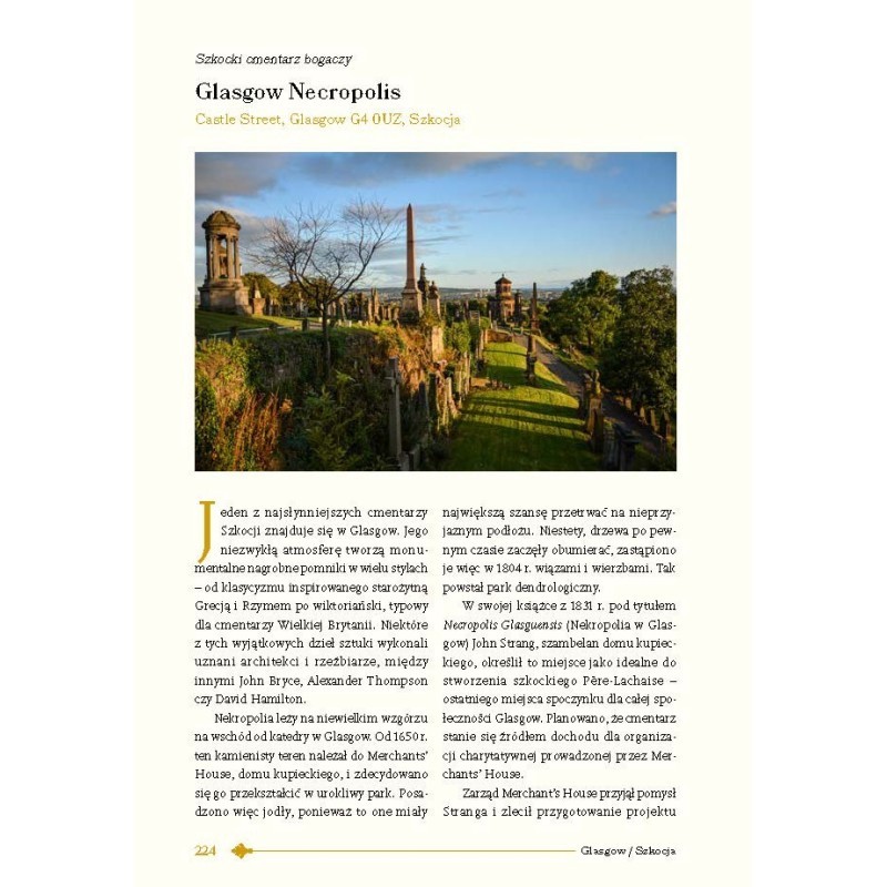 Fascynujące opowieści, zjawiskowe zdjęcia, nierozwiązane tajemnice, mity i legendy mieszające się z rzeczywistością. Upiornie piękna książka budzi do życia nekropolie, wyjaśnia tajemnicze symbole i znaczenie cmentarnej architektury, tłumaczy obrządki pogrzebowe i opowiada historie tych, którzy już odeszli. Od antycznych rzymskich katakumb po modernistyczne nekropolie – poznaj najwspanialsze nekromiejsca w Europie, bo... cmentarze nie są tylko dla zmarłych!