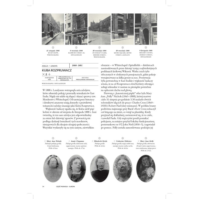 Dr Drew Gray powraca na miejsce zbrodni i przeprowadza szczegółowe analizy ponad 100 morderstw, które wstrząsnęły XIX-wiecznym światem. Drastyczne zdjęcia z miejsca zbrodni wykonane przez pionierów tej techniki policyjnej, wymowne ilustracje