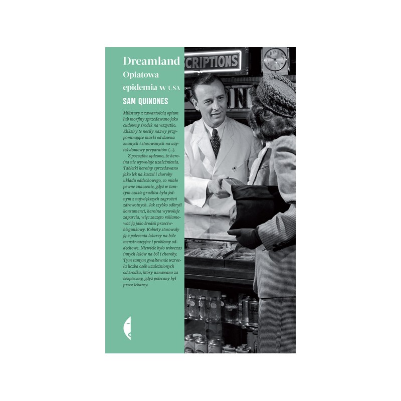 W 2008 roku w USA liczba zgonów w wyniku przedawkowania opiatów przewyższała liczbę ofiar wypadków samochodowych. Osób uzależnionych od leków z roku na rok jest coraz więcej, a rynek farmaceutyczny rośnie w siłę. Jak to możliwe, że legalnie dopuszczona do sprzedaży tabletka przeciwbólowa może doprowadzić do epidemii uzależnień? Sam Quinones drobiazgowo rekonstruuje dzieje tej katastrofy. Z jednej strony rzetelnie przedstawia kolejne etapy wprowadzania niebezpiecznych leków do regularnej sprzedaży i pokazuje przeraźliwie krótką drogę od ukojenia bólu do nałogu. Z drugiej – wprowadza nas w świat meksykańskich handlarzy „czarną smołą”, którzy korzystając z plagi uzależnień od opiatów, zajęli się sprzedażą heroiny i dostarczają ją pod drzwi narkomanów niczym dostawcy pizzy. Szefowie koncernów farmaceutycznych, dilerzy, policjanci, narkomani, rodzice tych, którzy przegrali z nałogiem. Bohaterów Dreamlandu jest wielu i to ich historie składają się na wstrząsająca opowieść o problemie, wobec którego Ameryka okazuje się bezradna.