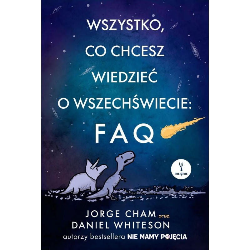 Nowa arcyciekawa, poszerzająca horyzonty, a przy tym jak zawsze zabawna książka autorów bestsellera NIE MAMY POJĘCIA! Gdyby istniała instrukcja obsługi wszechświata, ta książka byłaby jej sekcją FAQ - tą z najczęściej zadawanymi pytaniami. My, ludzie, może i nie zgadzamy się w wielu kwestiach, ale jedno na pewno nas łączy: ciekawość. Wszyscy jesteśmy ciekawi świata i wszyscy pragniemy poznać odpowiedzi na nurtujące nas pytania. Czy czas się kiedyś zatrzyma? Jak długo przetrwa ludzkość? Co jest w czarnej dziurze? Czy odwiedzili nas kiedyś kosmici? Co słychać w kwestii teleportacji? Czy mamy wolną wolę? A może żyjemy w symulacji komputerowej? Dlaczego E=mc2? To tylko część pytań, na które odpowiadają Jorge Cham (doktor robotyki i rysownik) oraz Daniel Whiteson (profesor fizyki) - eksperci w wyjaśnianiu zagadnień naukowych w wyjątkowo zrozumiały i rozrywkowy sposób. Ta dowcipna i w pełni ilustrowana książka stanie się twoim niezbędnym przewodnikiem po kłopotliwych aspektach rzeczywistości: począwszy od niewidzialnych cząstek, z których składa się twoje ciało, skończywszy na identycznej wersji ciebie, która teraz zupełnie jak ty siedzi i czyta to zdanie tyle że w jakimś zakątku odległej galaktyki!