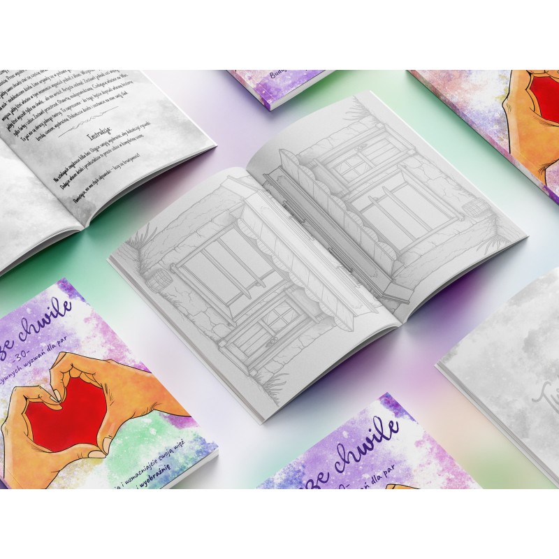 Twórcze chwile: 30 kreatywnych wyzwań dla par to pionierska publikacja, która redefiniuje pojęcie wspólnego spędzania czasu i budowania bliskości. Zamiast kolejnego poradnika, czytelnicy otrzymują interaktywne narzędzie warsztatowe, w którym każde z 30 zadań składa się z nastrojowego wstępu, jasnej instrukcji oraz części praktycznej do wspólnego uzupełniania. Choć jest to książka do rysowania, jej nadrzędnym celem nie jest tworzenie estetycznych dzieł sztuki, lecz sama radość z procesu tworzenia i wspólne bycie "tu i teraz". Kluczowym wyróżnikiem produktu jest autorski układ wnętrza: strony są obrócone względem siebie o 90 stopni, co pozwala dwóm osobom siedzieć naprzeciwko siebie i tworzyć w tym samym czasie, bez konieczności odwracania książki czy czekania na swoją kolej. Ta unikalna mechanika została zaprojektowana, by maksymalizować wspólne doświadczenie, budować relacje i zachęcać do autentycznej interakcji. Tytuł stanowi otwarcie nowej serii wydawniczej opartej na modelu równoczesnego działania - w przygotowaniu są już kolejne edycje: rodzic-dziecko, dla przyjaciół oraz wersje tematyczne. Z przeprowadzonego researchu wynika, że obecnie ani na rynku polskim, ani zagranicznym nie sposób spotkać publikacji o zbliżonej konstrukcji, która w tak bezpośredni sposób umożliwiałaby parze siedzenie naprzeciwko siebie i wspólne tworzenie w dokładnie tym samym momencie.